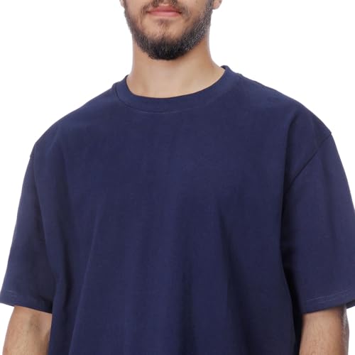 COUP - تيشيرت سادة بتصميم فضفاض من كوب، بلون كحلي، مقاس L