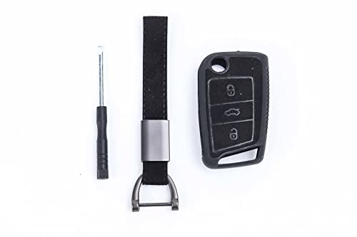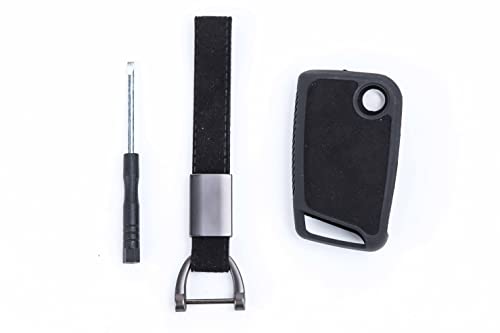 Generic - جراب مفتاح سيارة ريموت فوت واقٍ من الجلد والمخمل بعلاقة مفاتيح مع مفك مجاني لسيارة فولكس فاجن، بلون نايل 11