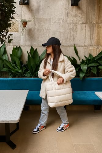COZY UP IN STYLE - Women’s Large Quilted Nylon Tote Bag, Lightweight Water-Resistant Shoulder Handbag with Zipper for Work, Travel, Diaper or Laptop Use