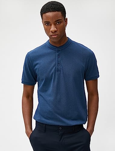 KOTON - Crew Neck T-Shirt Slim Fit Button Short Sleeve