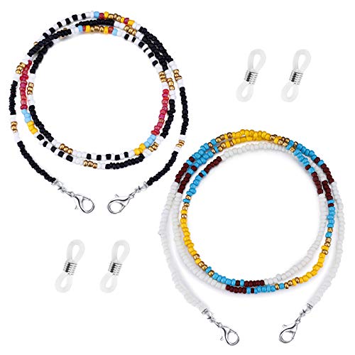 Crimmy - Crimmy Glasses Eyeglass Chain for Women, Stylish Sunglasses String Strap, Beaded Eye Glasses Chain Around Neck, Black+rice