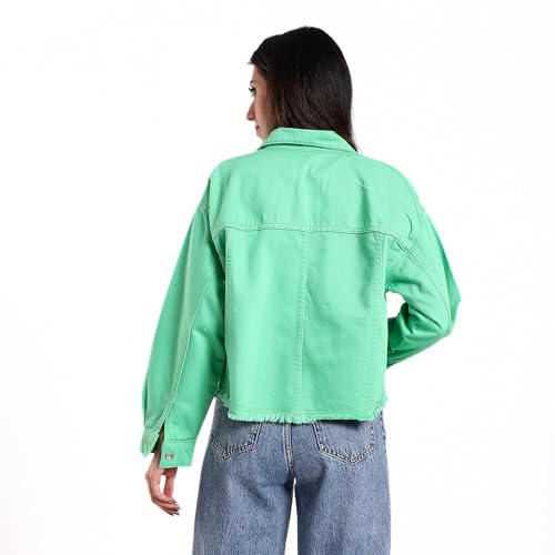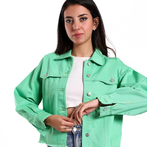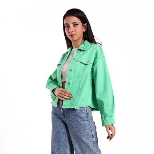 Coctail - Cropped Gabardine Jacket, Mint Green, Raw Hem, Button Front-17008N