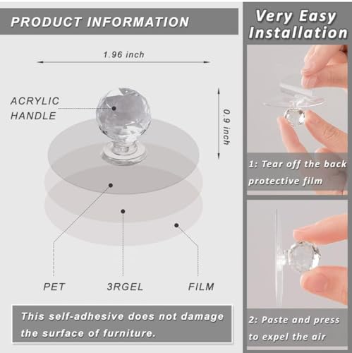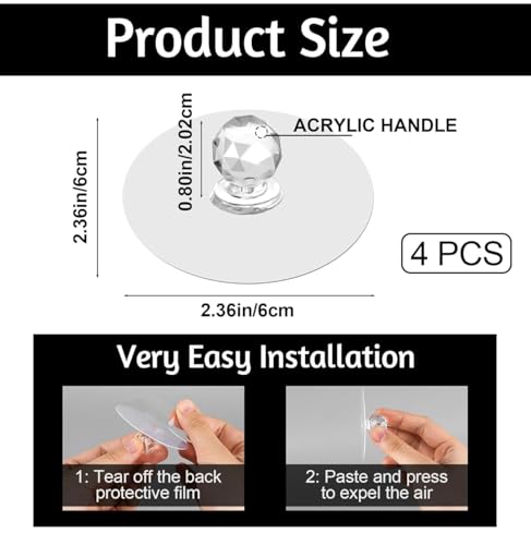 - SET CONTENTS: Package includes 4 transparent crystal-shaped pulls with strong adhesive backing for immediate use