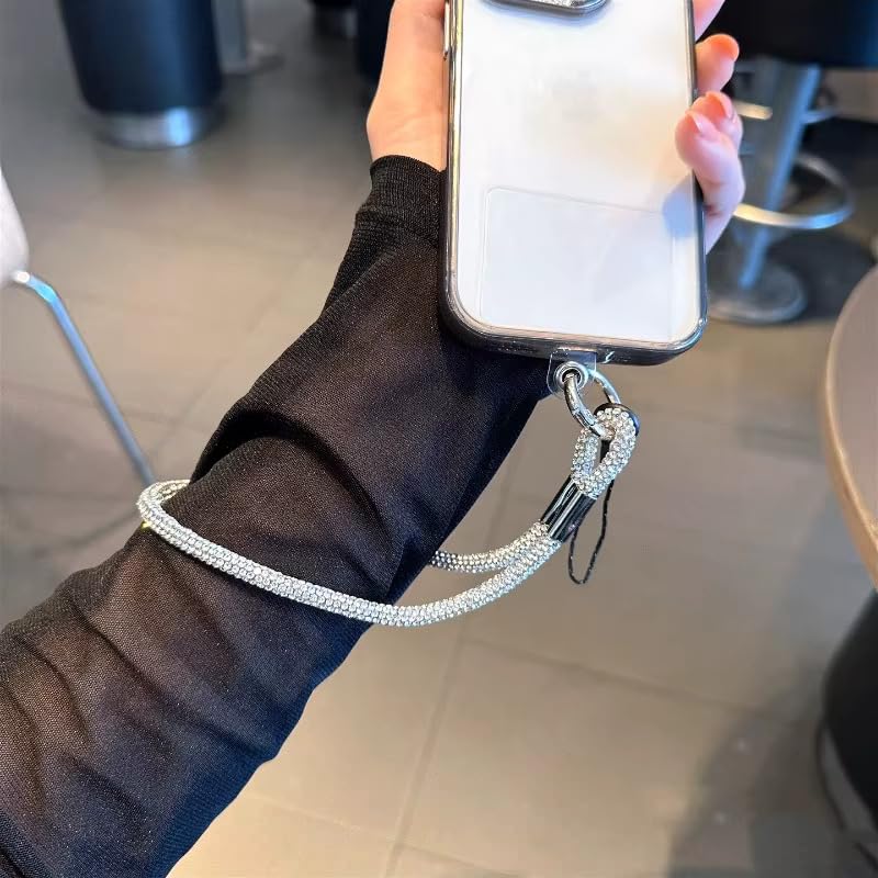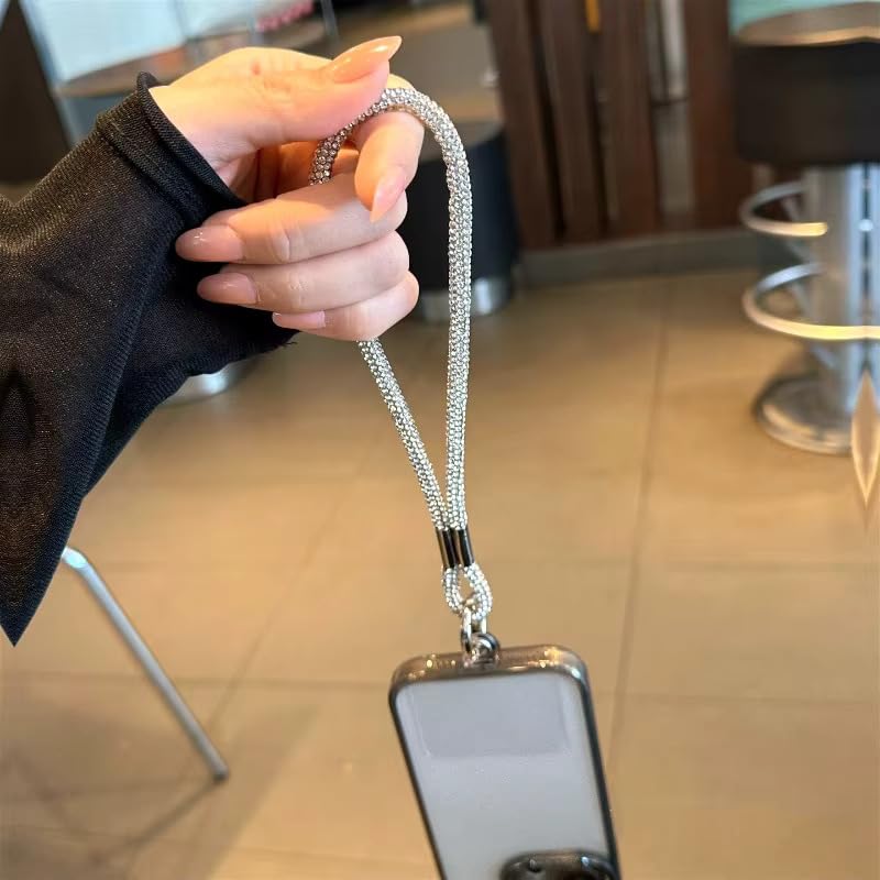ecosystem - Crystal Rhinestone Lanyard with Key Ring, Diamond Rhinestone, Gold Ring Accent, Phone and Card Holder (15cm)