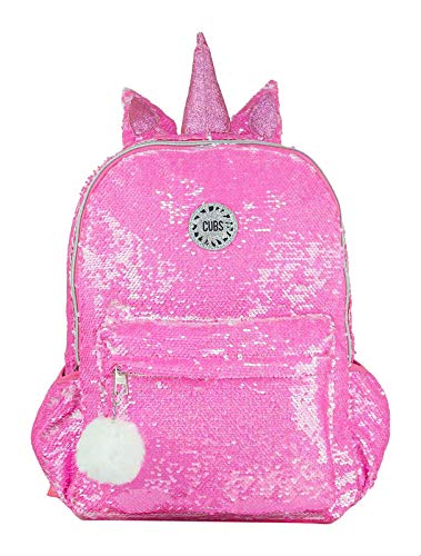 Cubs - Cubs Sequin Zip-Around Front-Pocket School Backpack with Adjustable Shoulder Strap for Girls - Pink