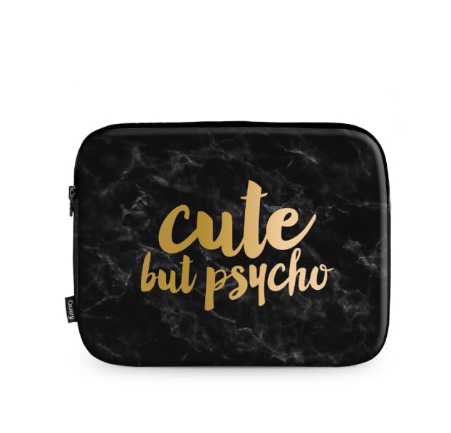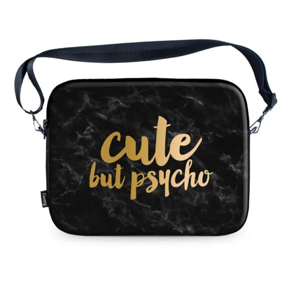 Cute But Psycho Shoulder Bag, Black Marble Pattern with Gold Text, Adjustable Strap