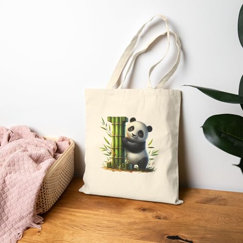 Generic - Cute Panda Tote Bag with Bamboo Letter I – Eco-Friendly Canvas Bag for Panda Lovers Tote Bag With Zipper-799
