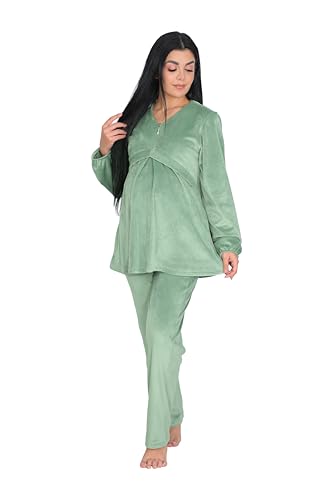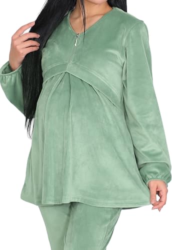 Dadoush - Dadosh Maternity Velvet Pajamas Set for Women, Multi Color Available, Soft and Warm Velvet Maternity Clothes Set with Zipper Front