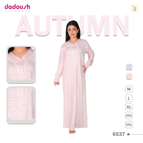 Dadoush - Dadosh Womens Long Sleeve Shirt Polyester Floral Elegant Home Comfort Nightgown Winter Nightgown Abaya Petit for Women