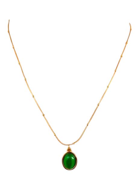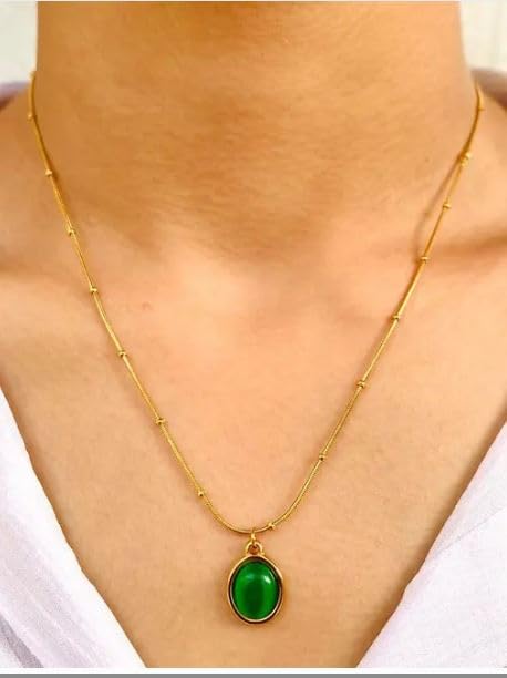Generic - Dainty Gold Chain Necklace with Oval Green Gemstone Pendant, Satellite Beaded Design
