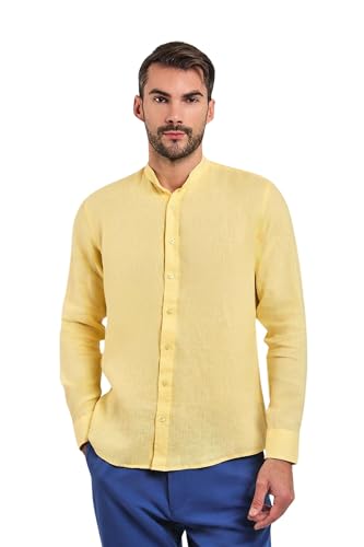 DALYDRESS - DALYDRESS Men Fancy Mandarin Collar Linen Shirt With Long Sleeves DRMxx002528 Modern