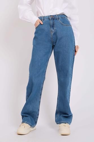 DALYDRESS - دالي دريس بنطلون جينز بقصة مريحة وخصر مرتفع للنساء، لون ازرق، مقاس 46