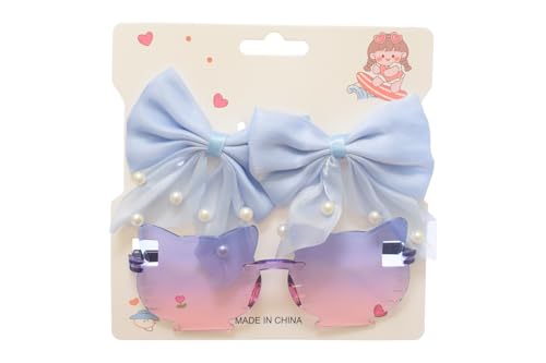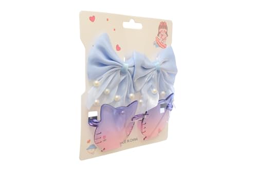 - تتضمن المجموعة 3 مشابك شعر على شكل فيونكة باللون الأزرق الفاتح والأرجواني.