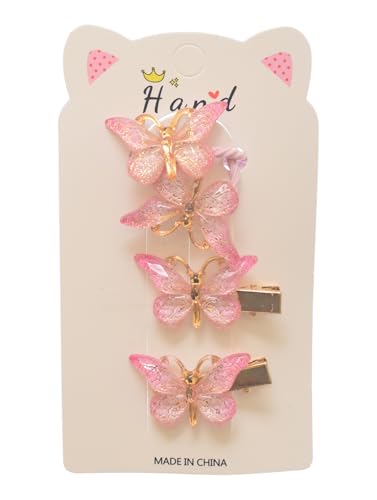 Daphane - Fun Hair Clips and Ties Set for Girls, 4 Pieces – Pink