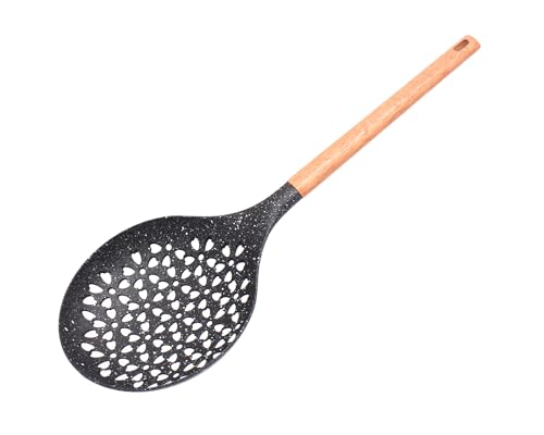 - CONSTRUCTION: Durable spoon head with marble-effect finish and artistic perforated pattern that allows efficient draining