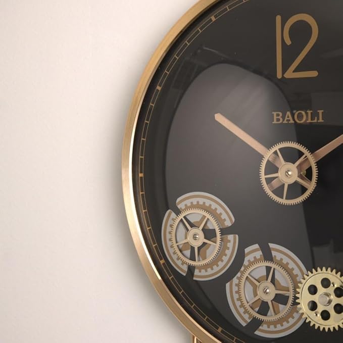 Generic - Decorative Wall Clock with Moving Gears, Gold Frame, Black Face