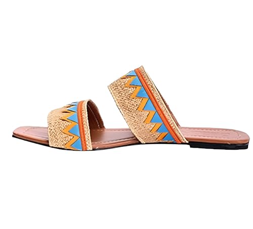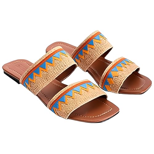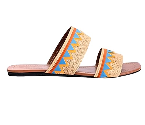 Deeda - Deeda womens Two-Tone Zigzag Detail Double Strap Slide Slippers Slippers