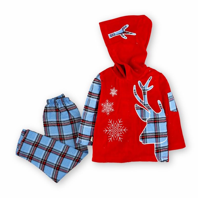 Generic - بيجامة شتوية بتصميم غزال، لون أحمر، مقاس مناسب لعمر من 12 إلى 24 شهر