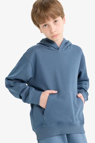 DeFacto - ديفاكتو سويت شيرت كاجوال محبوك بغطاء للرأس واكمام طويلة وقصة عادية للاولاد E9558A8، ازرق نيلي فاتح لعمر 11/12 سنة