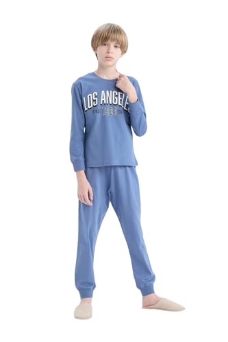 DeFacto - DeFacto Boys Regular Fit Crew Neck Long Sleeve Special Collection Homewear Knitted Pyjamas D9966A8 Knitted Pyjamas