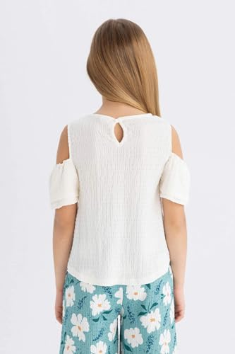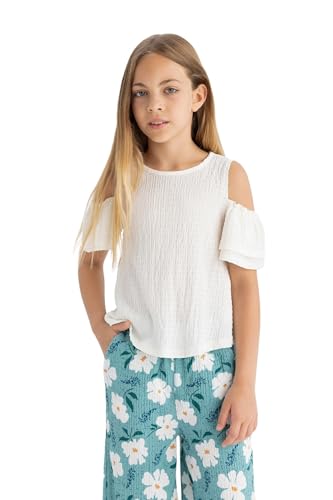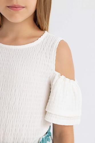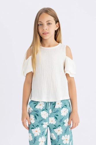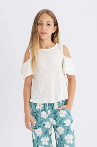 DeFacto - تيشرت منسوج بأكمام قصيرة ورقبة دائرية ضيقة وقصة مريحة للبنات C6890A8 من ديفاكتو