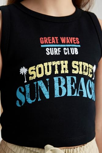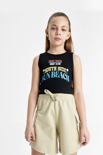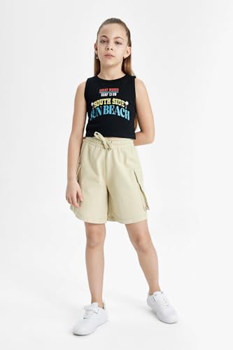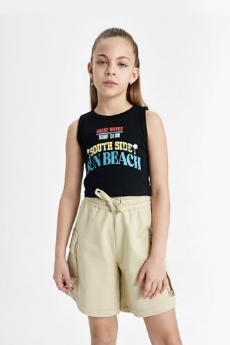 DeFacto - قميص رياضي منسوج بدون أكمام بقصة ضيقة للبنات من ديفاكتو، C2213A8