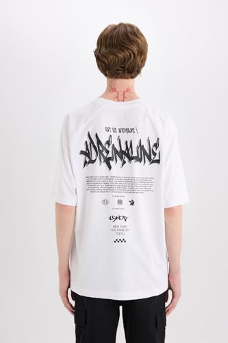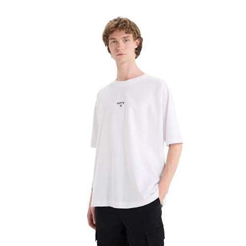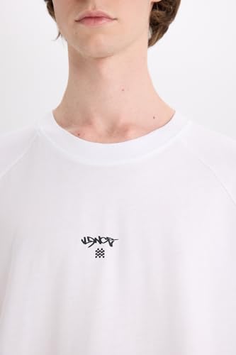 DeFacto - ديفاكتو تي شيرت رجالي فضفاض برقبة دائرية ضيقة واكمام قصيرة D7356AX، ابيض، مقاس XL