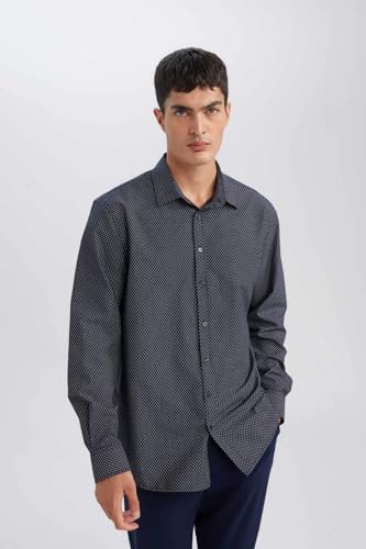 DeFacto - DeFacto Man Man Smart Casual Woven Top Modern Fit Polo Neck Long Sleeve Long Sleeve Shirt D3377AX Long Sleeve Shirt