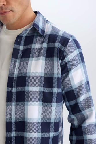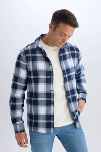 DeFacto - تيشرت منسوج بقصة عادية ورقبة بولو وأكمام طويلة للرجال من ديفاكتو، كحلي، اكس سمول