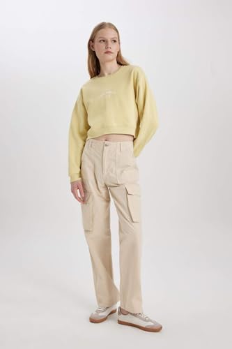 DeFacto - سويت شيرت منسوج واسع برقبة دائرية ضيقة وأكمام طويلة للنساء C5385AX من ديفاكتو