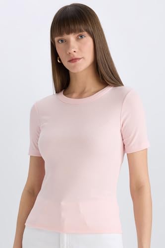 DeFacto - DeFacto Woman Knitted Slim Fit Crew Neck Short Sleeve Short Sleeve T-Shirt C0097AX Short Sleeve T-Shirt