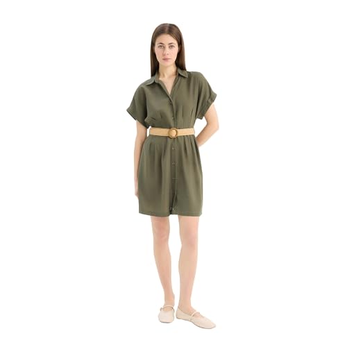 DeFacto - فستان كاجوال وتنورة للنساء، فستان بياقة قميص وأكمام قصيرة من نسيج محبوك D8447AX، فستان كاجوال من ديفاكتو