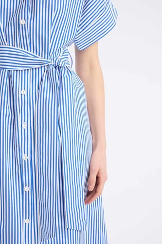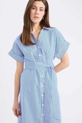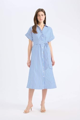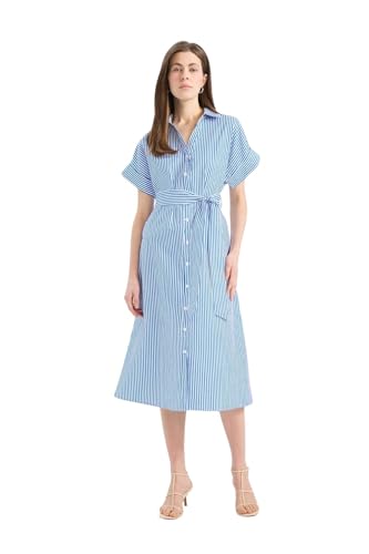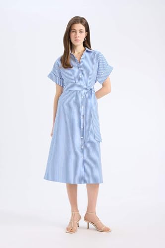 DeFacto - فستان من نسيج محبوك بقصة ضيقة من الأعلى وتنورة كاملة بأكمام قصيرة وياقة قميص للنساء من ديفاكتو، مجموعة من قطعة واحدة
