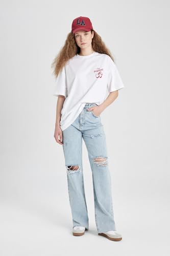 DeFacto - تيشرت منسوج بأكمام قصيرة ورقبة دائرية محكمة بمقاس كبير للنساء من ديفاكتو، موديل C5958AX