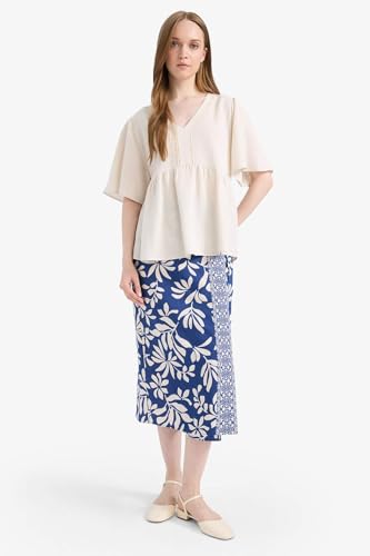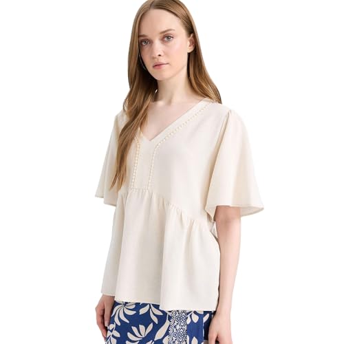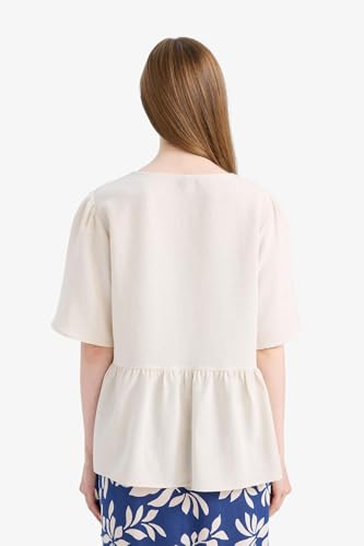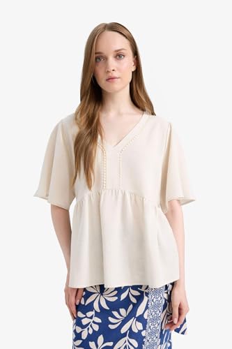 DeFacto - DeFacto Womens Regular Fit V Neck 3/4 Sleeve Traditional Woven Top Short Sleeve Blouse E7336AX Short Sleeve Blouse