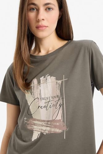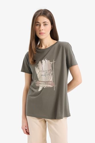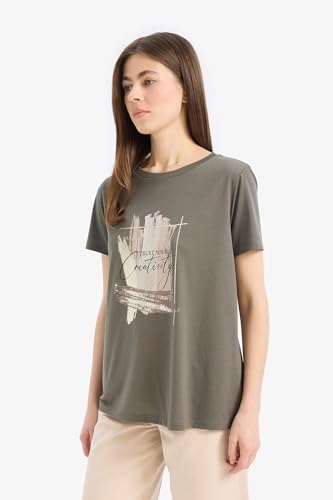 DeFacto - DeFacto Womens Relax Fit Crew Neck Short Sleeve Casual Knitted Short Sleeve T-Shirt E9564AX Short Sleeve T-Shirt