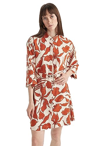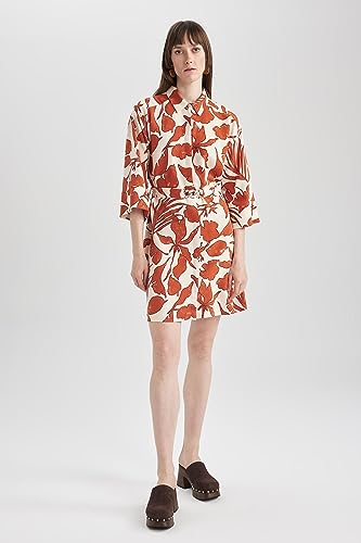 DeFacto - فستان للنساء بنسيج محبوك بأكمام قصيرة وياقة قميص من ديفاكتو، A3336AX