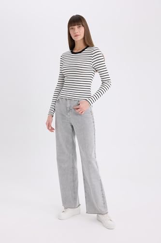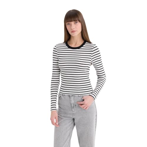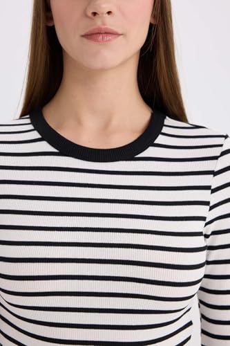 DeFacto - تيشرت منسوج طراز D3754AX بقصة ضيقة سليم فت ورقبة دائرية ضيقة وأكمام طويلة للنساء من ديفاكتو
