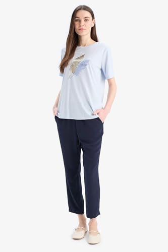 DeFacto - DeFacto Womens Traditional Regular Fit Bike Neck Short Sleeve Knitted Short Sleeve T-Shirt Short (pack of 1)
