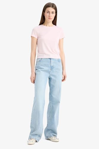 DeFacto - تي شيرت قصير الأكمام محبوك بأكمام قصيرة ورقبة دراجة للنساء الشابات من ديفاكتو (عبوة من قطعة واحدة)