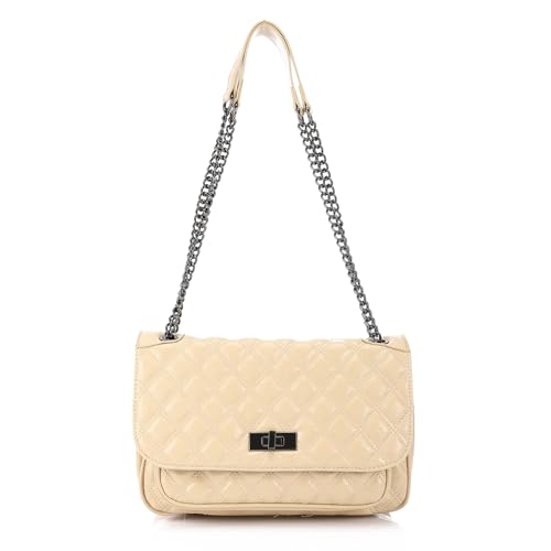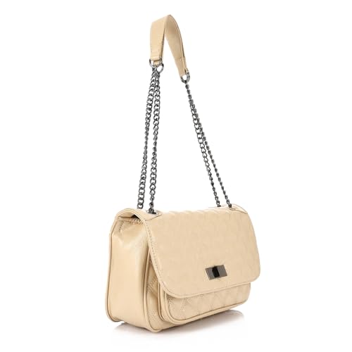 dejAVU - ديجافو شنطة كتف مبطنة بقفل للاغلاق للنساء من LID-DVTV-006 - بيج فانيلا، بيج، مقاس واحد