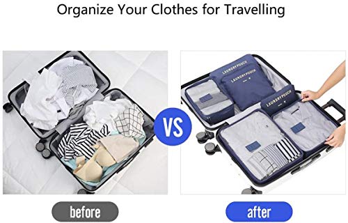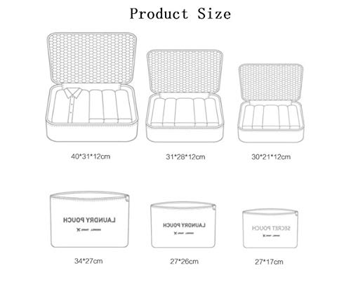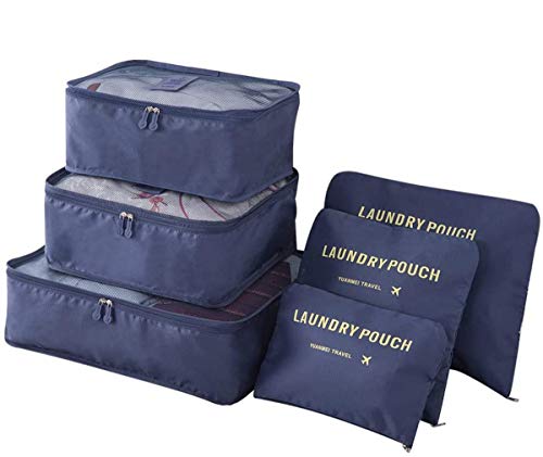 DELFINO - DELFINO Storage Bag Travel Luggage Organizer 6 Set for Suitcase Packing Organizer, Travel Packing Pouches Packing Cubes, Clothes Sorting Package, Navy, Travel Storage Bag, Clothes Sorting Package