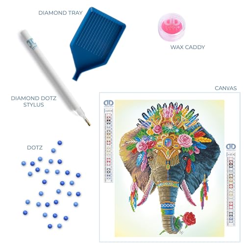 DIAMOND DOTZ - مجموعة لوحة فنية بوهيمية بتصميم فيل من دايموند دوتز، متعددة الألوان