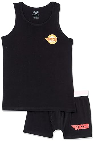 Dice - دايس طقم ملابس داخلية بدون اكمام بطبعات مختلفة وشورت بوكسر مقاس 10 × 11 سنة بلون اسود (عبوة من 6 قطع)