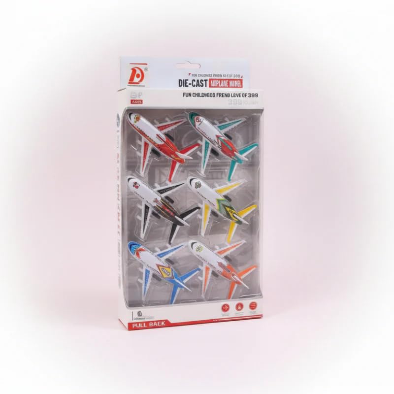 Generic - Die-Cast Airplane Model Set, Pull Back Action, 6 Pack Mini Airplanes, Multicolor