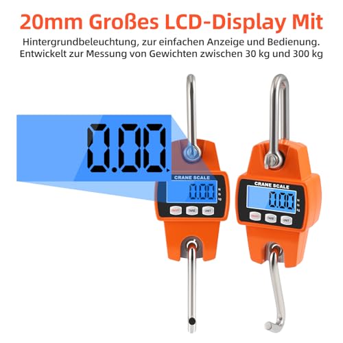 UPROZIL - ميزان مطبخ رقمي بخطاف لشنط السفر، ميزان رفع إلكتروني صناعي لصيد الأسماك وشنطة السفر والصيد في الهواء الطلق، شاشة LCD، 300 كجم