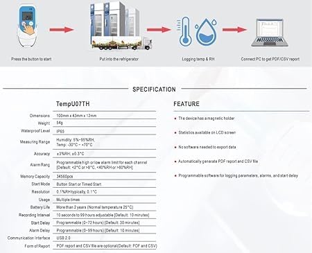 Generic - درجة حرارة ورطوبة داخلية رقمية، USB، موديل TempU07TH