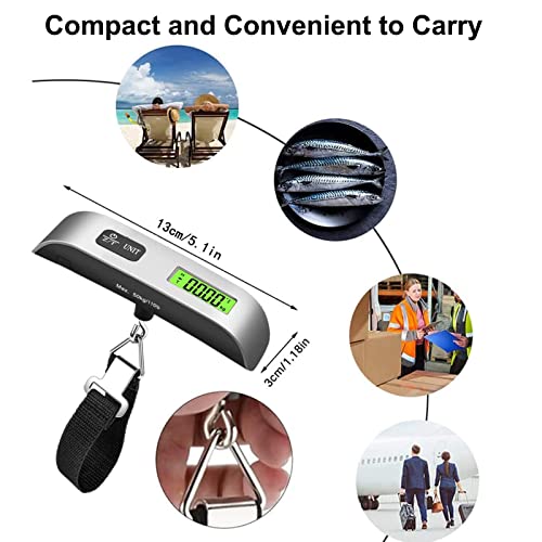 - Backlight LCD Display - Digital lLuggage scale with the push of a button easily switch the display of your portable weight checker for luggage between pounds/kilograms to measure up to 110lbs/50kg. Easy to read in dim light. Graduation: 0.1lb/50g