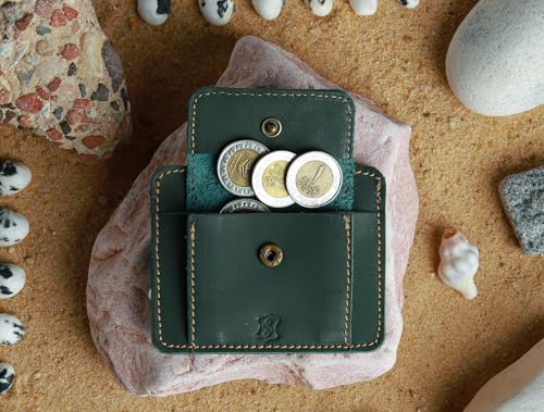 - 5 جيوب، تتسع لـ 7 بطاقات + جيب مركزي كبير للنقود المعدنية مصنوعة من الجلد الطبيعي الشمواة و البرنش، وهو أفضل انواع الجلد الطبيعي بطانة ساتان قطنية عضوية معتمدة خطوط مطوية منقوشة بشكل دقيق تحت الجيوب تفاصيل خياطة على الحواف