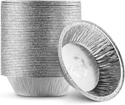 Generic - صينية فطائر من رقائق الألومنيوم للاستعمال مرة واحدة دائرية مقاس 12.7 سم لخبز الفطائر الصغيرة الشخصية والكعك والكيشي محلية الصنع فويل أمنة للاستخدام في الفرن سهلة التكديس والتخزين والتجميد 50 قطعة فضي